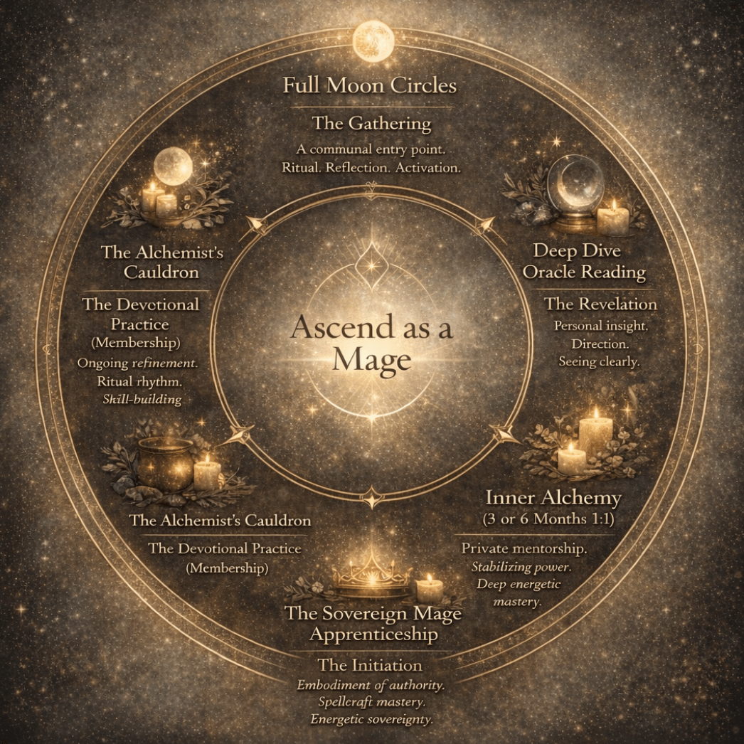 I guide intuitive women, coaches, healers, emerging witches who are DONE dabbling, into their Mage identity.